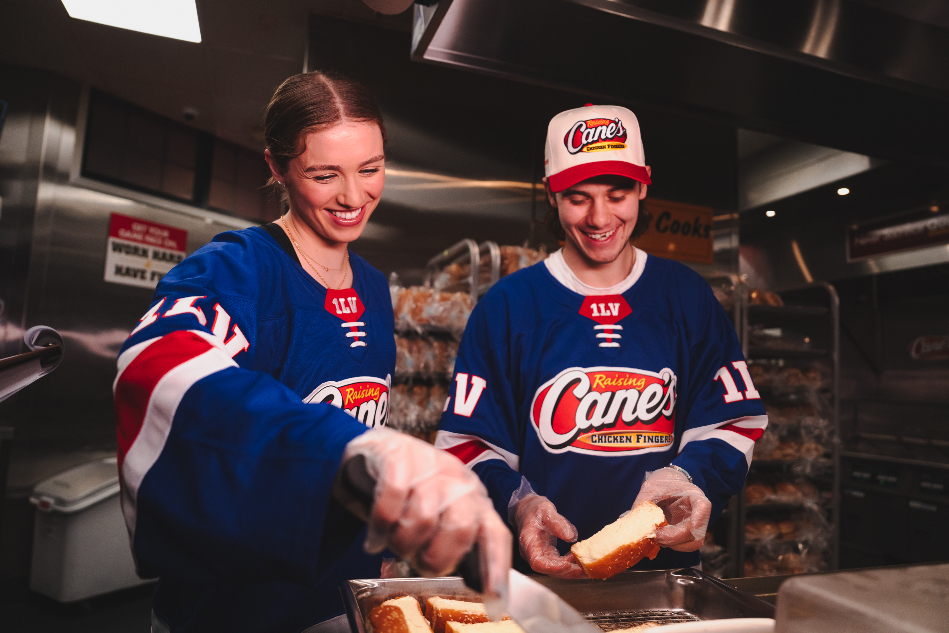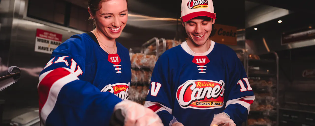 The pair traded in their skates for Sauce as they stepped behind the Front Counter in their matching red, white and blue Cane’s jerseys to bring the taste of our ONE LOVE® and sweet victory to loyal fans and Caniacs.