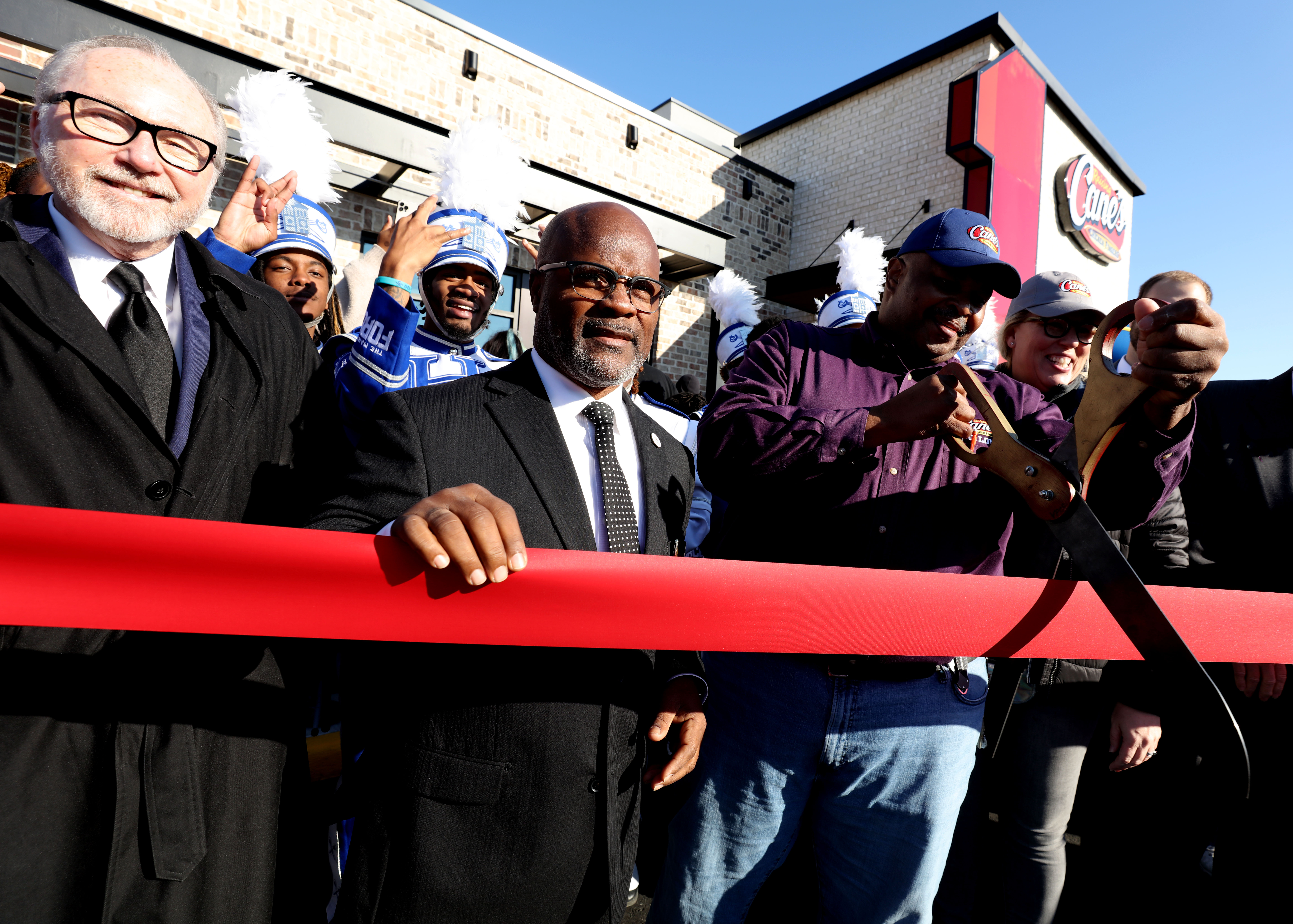 On opening day, Caniacs could participate in the fun by entering our Lucky 20 drawing for a chance to win free Cane’s for a year. The Hampton University Marching Force Drum Line and Blue Thunder Cheerleaders were on-site in the morning and helped kickstart the excitement for the day.